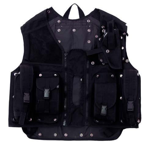 Chaleco Táctico SWAT, con 12  bolsillos externos extraíbles y funda para arma. Cierre central con cremallera. Velcro de gran calidad unido clip de gran resistencia. Los bolsillos exteriores con velcro y botones se adhieren al chaleco, tanto a los laterale