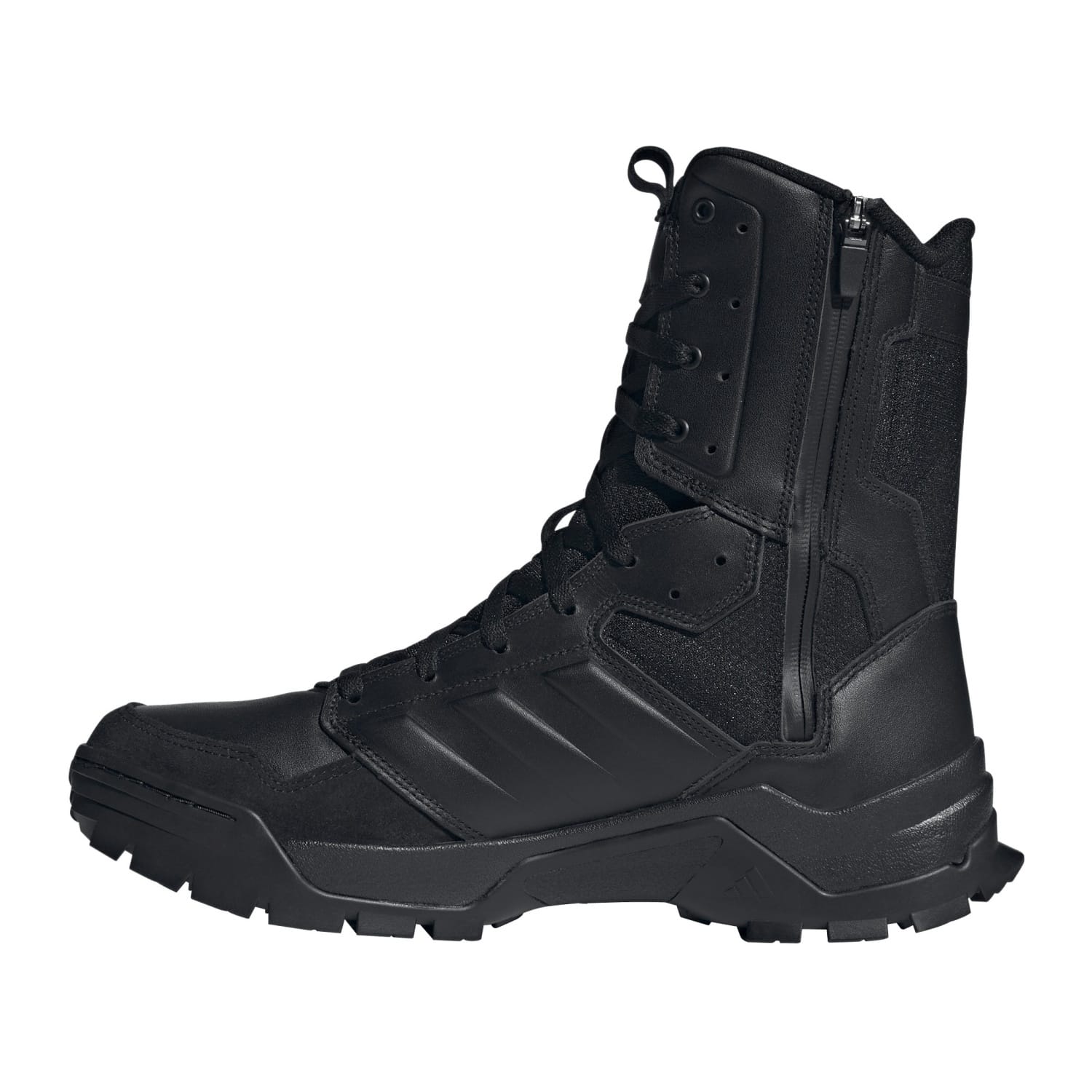 Prepárate para cualquier misión con las nuevas ADIDAS GSG 9.2 2024 ZIP de adidas Terrex. Diseñadas para jornadas largas y exigentes, equilibran amortiguación, tracción y protección. La entresuela de EVA y la suela Adiwear absorben impactos y aseguran agarre y pisada estable en superficies variadas. La cremallera lateral permite un calce y descalce ultrarrápido manteniendo los cordones atados, mientras que la piel de plena flor mantiene tus pies protegidos y en perfecto estado. El acabado Core Black ofrece una estética profesional y discreta lista para la acción.